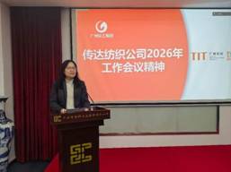 會上,塑料公司副總經(jīng)理黨慧傳達了紡織公司2026年工作會議精神,要求全體與會人員深刻學(xué)習(xí)領(lǐng)會、強化責(zé)任落實,推動各項決策部署一貫到底。